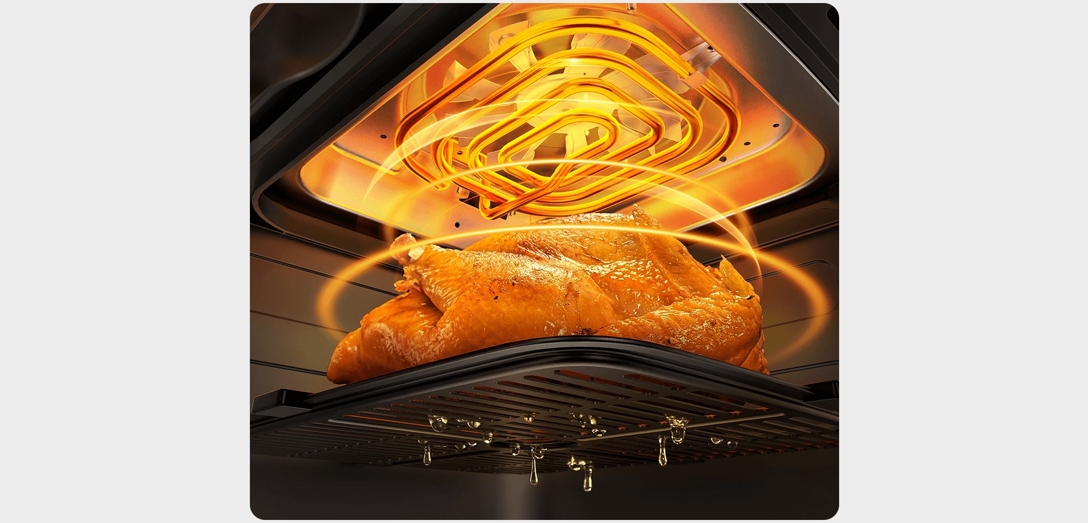 Технология циркуляции горячего воздуха на 360° равномерно прогревает продукты, создавая аппетитную хрустящую корочку и сохраняя сочность внутри. Мощность 2700 Вт обеспечивает скорость готовки до 71% выше по сравнению с традиционными духовками.