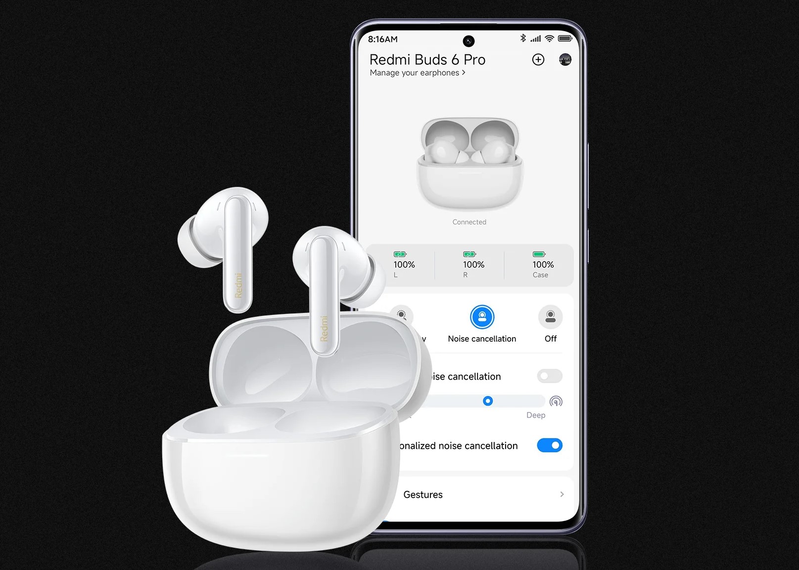 Уровень шумоподавления можно легко настроить в приложении Xiaomi Earbuds. Также, предлагаются режимы адаптации к окружающему пространству и ушному каналу для оптимального восприятия.
