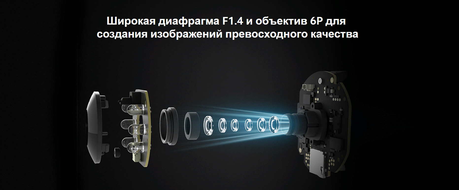 Широкая диафрагма F1.4 и объектив 6P для создания изображений превосходного качества