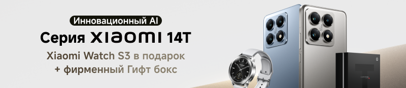 При покупке Xiaomi 14T/14T Pro — смарт-часы Xiaomi Watch S3 и Гифт-бокс в подарок!
